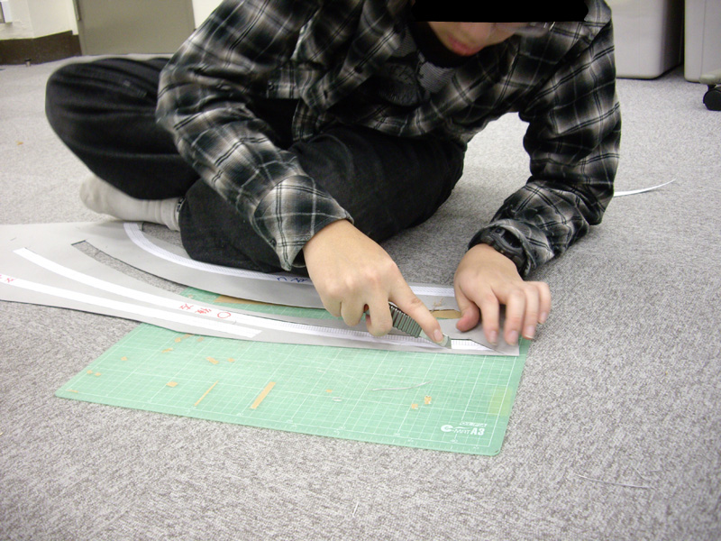 →発泡スチロール同士の接着時に圧力が足りない部分があり、接着が甘い部分がありそこから破壊が進んだ。ヤスリがけの際に接着している接着面までやすってしまった。