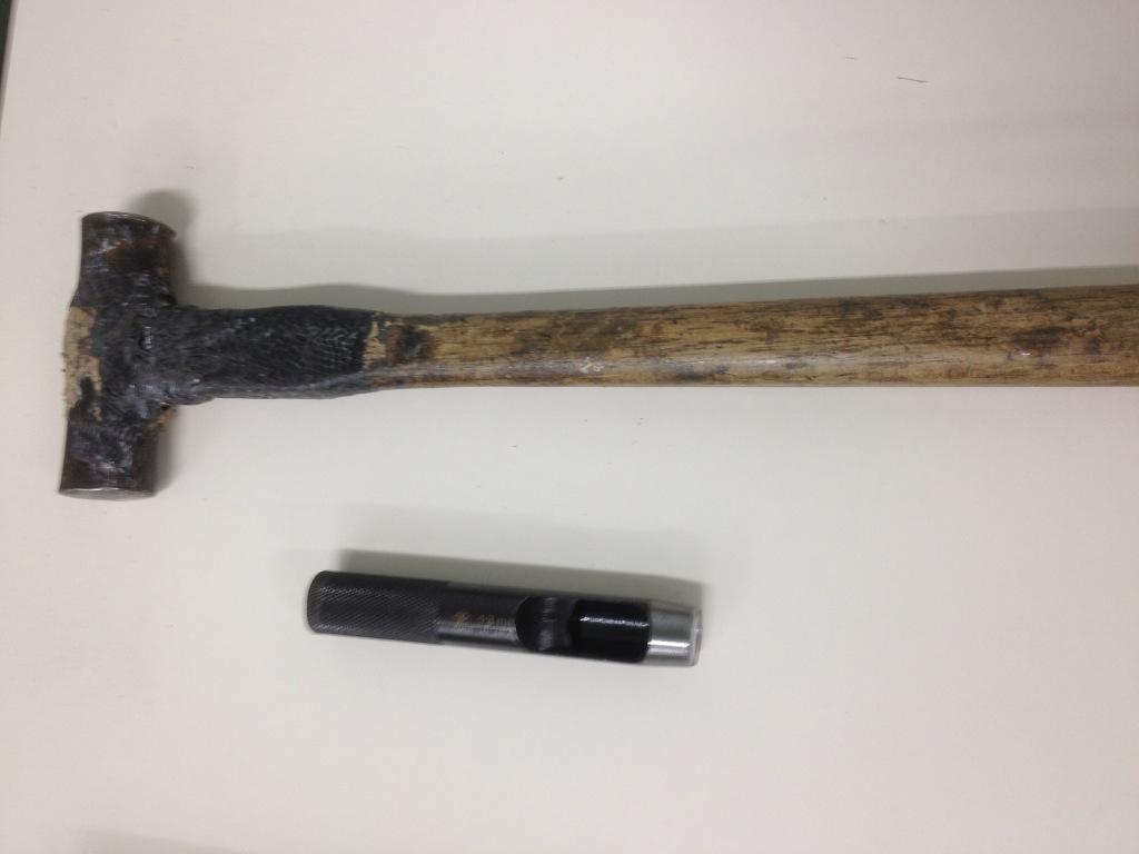 ポンチはナイフが円形についており、ハンマーで後ろからたたくと円形の穴を開けることができます。
