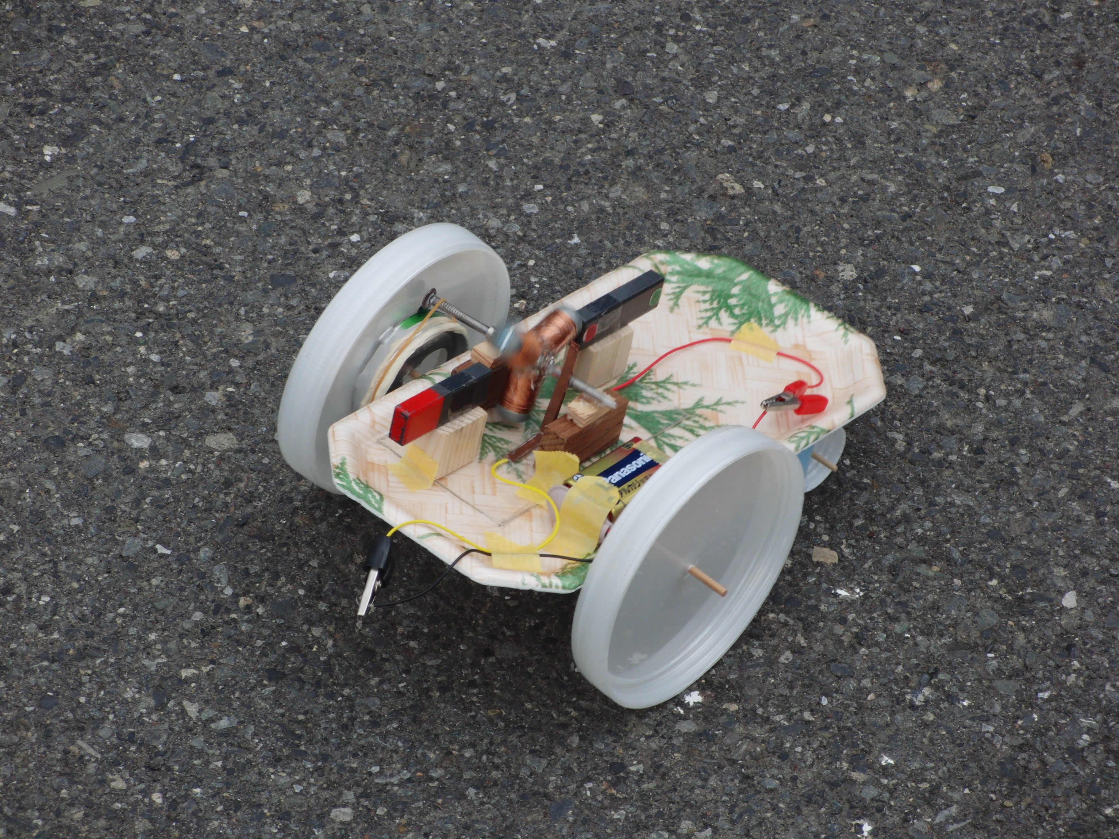 動力を全て自分たちの手で作り、自分たちでデザインした「何か」を走らせます。市販のモーター等を使うことは許されません。走行距離と、デザイン性が審査されます。